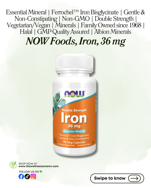 NOW Foods, Iron, 36 mg, 90 Veg Capsules